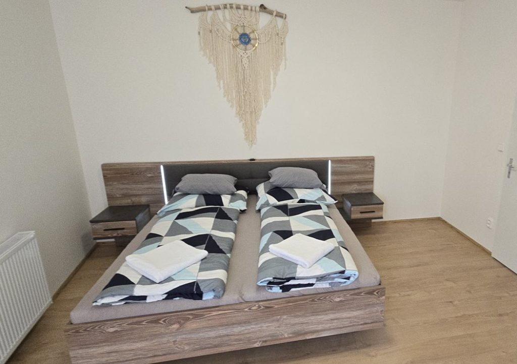 Prostorný jednopokojový apartmán, kde se můžou ubytovat 2 hosté. Apartmán je plně vybavený, jako v hotelu. Nabízíme možnost snídaní formou bufetu. Ubytování je vhodné jak pro páry tak firemní hosty a zaměstnance na služebních cestách. K dispozici je Vám podzemní garážové stání. Apartmán se skládá z jedné oddělené ložnice propojené s obývacím pokojem, kde se nachází rozkládací pohovka. Ubytování mají k dispozici vlastní kuchyni a koupelnu s toaletou. WIFI zdarma.